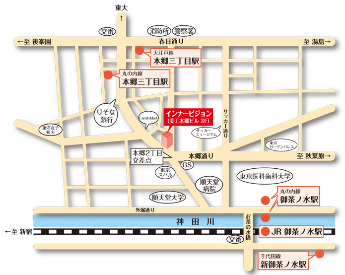 - 丸の内線 本郷三丁目駅 1番出口より徒歩3分