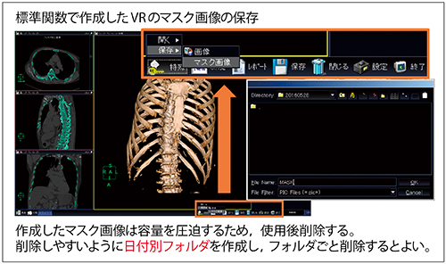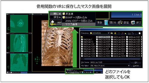 「AZE VirtualPlace」(AZE社製)の標準機能にあるマスク画像データを活用することで,標準関数の処理の簡便さを維持したまま,短時間で骨用関数の高分解能VR画像が作成可能となる(図2)。