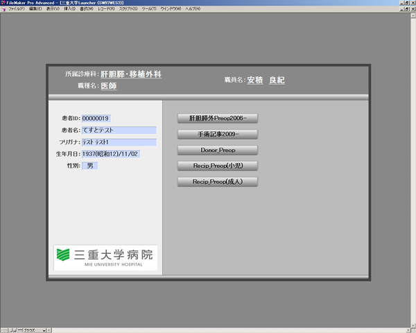 FileMakerによる診療科のデータベースの一例(肝胆膵移植外科の術前検討会用ファイル)