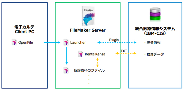 「IBMでは,FileMakerとの連携をCISの1つの特長としています。他の施設でも連携の実績があり,そこで開発されたFileMaker連携のプラグインが提供されており,それを利用して電子カルテとの連携を実現しました」(安積副部長)。