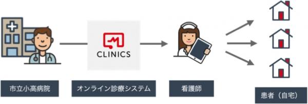 こうした背景を受けて,南相馬市は5月より,小高病院にて在宅医療を必要とする患者を対象としたオンライン診療を開始する。医師がオンライン診療による対応を可能と判断した場合に,看護師がタブレット端末を持ち患者宅に訪問し,医師はタブレット越しに診療を行う。