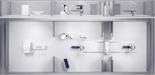 nexaris Therapy Suitesでは,X線透視・撮影装置を備えたハイブリッド手術室にMRIやスライディングガントリCTを追加することが可能。各装置をシームレスに使用するために,GETINGE社と共同で新しいMAGNUS手術台*を開発した。これにより,患者を移し替えることなく手術台に寝かせた状態のままで,X線透視・撮影装置,CT装置,MRI装置の利用が可能になった。3つの大型モダリティの画像を治療中に利用することにより,新たな治療への応用が期待される。