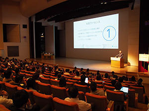 最後に,J-SUMMITS副代表の松波氏が再び登壇し閉会の挨拶を述べた。松波氏は,全世界のFileMakerライセンスのうち25%が日本,その中で医療業界の割合が22%,大学病院の97%でFileMakerが使用されているなどのデータを紹介し,さらに日本では少子化が進むが医療や介護のニーズは拡大するとの今後の見通しを述べ,地域包括ケアシステムの構築で患者情報の共有や活用のためのソリューションの提供が求められる中で,「FileMakerでは効率的に情報共有が可能なソリューションを提供できる。医療・介護の世界は成長分野であり大きなビジネスチャンスだ」とメッセージを送った。