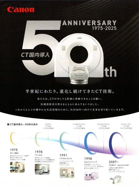 1982年には1000台だったCT生産台数は,2024年には5万台を達成,世界中の医療現場でキヤノンメディカルシステムズのCTが活用されている。現在もPhoton Counting CTの開発や,これまでのCTの概念を変える立位CTの開発・製品化など,次の50年に向けてCTの未来を切り拓くための取り組みが続けられている。