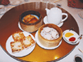 木村:飲茶が来ました。エビ餃子と大根餅と牛肉湯葉巻きオイスターソース掛けという,ごく普通のレギュラーなものを3つ選びました。大きいね,大根餅。 大江:大根餅ってなんですか。 木村:大根のすり身やホタテとか魚のすり身なんかを一緒にして炒めたもので,非常に消化がいいんですね,大根がつなぎですから。上品な味でしょう。これだけ食べても油が口に残らないしね。 |