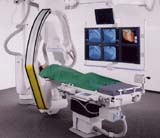 | 〈広いカバーエリアと自在なポジショニング〉 被検者を乗せ換えずに下肢から頭腹部までをカバーし,両サイドからアクセスが可能。PCIでの深いアンギュレーションも,高速なアーム速度とコンパクトなフラットパネルディテクタによってスムーズに行える。また,アームとテーブルにモニタが連動し,角度・位置を自動補正する機能を採用した。 |