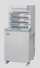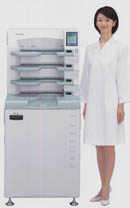 | 〈高速処理と4段カセッテセット棚で作業性が向上〉 高精細読み取りで,18cm×24cmサイズを1時間で約80枚の高速処理を実現。フィルム出力,モニタ表示時間も短縮。 |