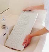 IT関連サービス,コンピュータ周辺機器販売を手がけるアテイン(株)は,米国Man & Machine, Inc.(マン・アンド・マシーン)が開発した防水・防塵キーボード「CoolOne」を発売した。素材にシリコンを使用し,本体とキーを一体化することで水やほこりの侵入を防ぐ。これにより,キーボードの洗浄ができるようになるという。また,高さ1.78cmの薄型設計で,キー配列,キータッチにも使いやすさを追求。コネクタにUSB,PS/2を採用しているほか,ローマ字変換による日本語変換にも対応している。 |