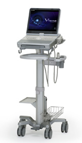 超音波診断装置は,検査時の患者さんへの負担が他の画像診断装置に比べて少なく,またリアルタイムに画像を観察できることから,腹部一般から全身までの幅広い臨床領域で使われている。「Viamo」は,プレミアムクラスの基本画質性能を小型のボディに搭載し,手術室から処置室や病棟など,幅広い診療シーンで使用可能な超音波診断装置。