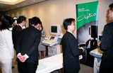 また桂田社長は,国内・海外の市場動向や同社のシェア,主力製品の紹介,国際的な評価について紹介するとともに,国内No.1シェアを有する同社の販売・サービス体制(国内80拠点,販売500人,サービス1000人)を紹介し,ファイナンス,レンタル事業,病院経営支援,資産管理などのソリューションをも提供しているとした。さらに,東芝住電医療情報システムズ株式会社を設立(本年4月)し,病院情報システムの強化を図っているとした。さらに,研究開発では,国内はもとより欧米の有力な医療機関を拠点病院として活用し共同研究を行っていることや,ソフト開発では20年の実績を有する米国シカゴをはじめ,インドや中国にも開発拠点を設けたとした。また,生産拠点では,中国の東芝大連社医用機器工場を設けることで中国向けの生産拡大を図るとともに,那須工場と共にグローバルな一体運営体制を確立したとした。売上げは,2003年度2800億円を達成しているが,今後,米国市場を中心にシェア拡大を図り,2006年度には3100億円を目指すとのこと。