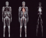 撮像時間は10分前後,血管は1分前後。全身を対象にした検査では,さまざまなコントラストによる撮像とすべての血管を描出することができる。また,臓器と血管を重ね合わせた表示では,解剖学的な位置情報がわかりやすくなる。