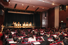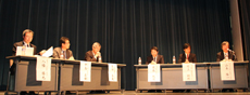 後半のパネルディスカッションでは,山本氏を座長として,竹上嗣郎氏(経済産業省商務情報政策局),児島純司氏(洛和会ヘルスケアシステム理事),篠田英範氏(保健医療福祉情報システム工業会標準化推進部会),中島直樹氏(九州大学病院医療情報部),八幡勝也氏(住田病院副院長)が登壇した。この中で,八幡氏は約款案の内容の検討,篠田氏はデータ交換規約の策定,児島氏はサービスモデルの検討,中島氏は二次利用に向けた対策を中心に実証事業の委員会やWGの中で担当してきた。ディスカッションでは,今回の事業の成果として紹介された約款案やデータ交換規約などについて改めて解説されたほか,会場からの質問を含めて,PHRを使ったビジネスモデルの可能性や事業としての継続性,今後の“どこでもMY病院”など政府の施策との関係などについて議論された。 |