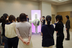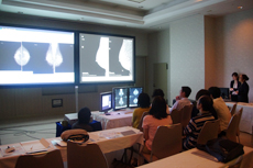 また,診療放射線技師向けのプログラムでは,2つのグループに分けて「デジタルマンモグラフィの基礎講座」と題した技術解説と,ポジショニング検討会が行われた。「デジタルマンモグラフィの基礎講座」では,FPDの仕組みなどの解説が行われたほか,アナログとデジタルの違いなどの解説があった。また,ポジショニング検討会では,MAMMOMAT Inspirationと「MAMMOMAT 3000 Nova」が会場内に設置され,ベテランの診療放射線技師が講師を務め,検診業務における疑問点などを参加者から聞きながらアドバイスを送った。 |