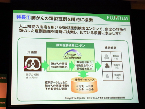 富士フイルムと静岡がんセンターは,医師の画像診断をサポートする世界初の「類似症例検索システム」を共同開発し,4月10日に都内で記者説明会を開催した。
