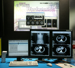 今回の展示の中心は,読影用画像ワークステーション「eFilm Workstation」とDICOM画像検像システム「iRad-EV