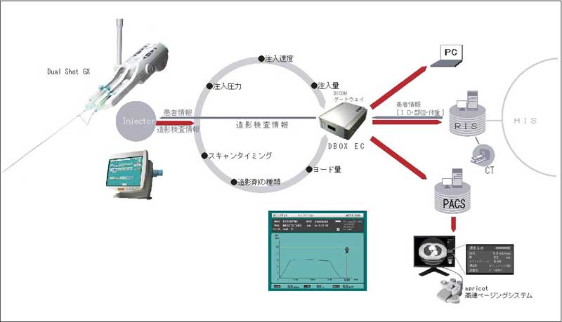DUAL SHOT GXの特徴 検査目的別に開発された注入プロトコル 必要なCT値を得る検査をするには体重を考慮した造影剤量、撮影時間を考慮した注入時間、目的の画像を得るための撮影タイミングがとても重要になります。 これら重要な要素を簡単な操作で自動的に計算し、最適な注入条件が設定できるソフトがさらに充実し実現されました。