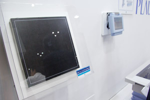 同社の新しい試みとして登場したのが、17×17インチのFPDを搭載したDR装置「PLAUDR」である。PFDのシンチレータ素材にCsl(ヨウ化セシウム)を採用。高い検出量子効率(detective quantum efficiency:DQE)を持ち、低被ばく量でも高画質が得られる。