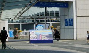 4月4日(金),いよいよJRC2008が始まりました。 みなとみらい線のみなとみらい駅からモダリティメーカーのポスターがお出迎え。 会場への通路など至る所にJRC2008のディスプレイが目につき,気分を盛り上げています。