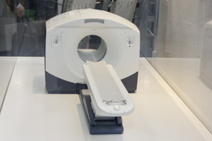 FPD搭載一般撮影装置「Definium8000」が展示された。最大150cmの長尺撮影が可能な“オートイメージペースト”や,X線管の支持軸に採用されたモータによって自動でポジショニングを行うことができる“オートポジショニング”,高速で安定性のある1枚形成のFPDを最大限に生かした“デュアル・エナジー・サブトラクション”などのほか,オプションでトモシンセシス“Volume RAD”を搭載することができる。