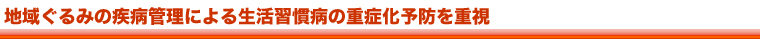 疾病管理には,従来の個人に対する疾病管理に加え,地域住民を対象とするものがあります。地域住民に対する疾病管理の必要性について,糖尿病を例にとって考えてみましょう。地域で糖尿病患者が増加してしまうと,人工透析の患者数も増え,透析を受けられない方が出てくるだけでなく,医療費が高騰し,国民健康保険(国保)の負担が重くなります。もし国保が破たんするようなことになれば,現在のわが国の医療制度そのものを維持できなくなり,地域医療の崩壊だけでなく,国民皆保険制度の存続も危ぶまれます。そこで,地域連携にITを活用し,地域住民の医療情報を集約して,共通の重症化予防プログラムやスクリーニングプログラムなどのワークシェアリングを行います。また,こうした情報を,医療整備や人材育成などに活用することも将来的には可能となるでしょう。