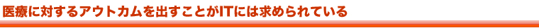 いまは国が医療分野のIT化に予算を投じていますが,医療に対するアウトカムを残せなければ,医療分野へのIT投資はなくなるでしょう。医師不足の解消なども大事なことですが,少子高齢化での医療対策や患者さんのQOL向上などにITは役立つという成果を示すことが大切です。これまでは,「つなげば良くなる」など,ITを導入することに満足していた側面があると思います。しかし,例えば電子カルテシステムを入れたから良い医療ができるわけではありません。