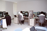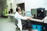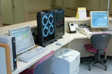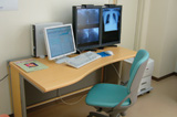 3Mモノクロモニタ2面と電子カルテシステム端末が設置されている。放射線科の読影室は院内に2か所用意されている。 |