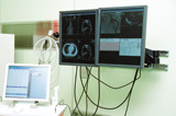 放射線部門では64列マルチスライスCTが2台,16列マルチスライスCTが1台,1.5T MRI が2台のほかPET/CT装置,SPECT/CT装置,血管撮影装置や放射線治療装置をはじめとした高度なモダリティを導入した。これらのモダリティから発生する膨大な画像データを有効に活用し,さらにはセンター内で発生するすべての画像,動画,波形データを一元管理するため,富士フイルムのPACS,SYNAPSEを中心とした統合画像システムを構築。電子カルテシステムとの連携によりフィルムレス運用を行っている。 |