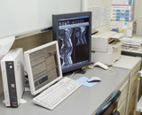 PACS運用から半年が過ぎた同院では,すでにフィルムレス運用のメリットが院内のさまざまな部分に表れている。放射線科の中島力哉科長は,「フィルムと比較して,モニタでの読影は圧倒的に情報量が多い。3Dワークステーションを使い,3D画像も比較しながら読影することも多く,フィルムよりもモニタ読影の方が良い」と,話す。また,放射線部の業務への効果として,山内技師長は「多大な労力を必要としたフィルミングやフィルムの整理などの作業が削減され,その分患者さんのために使える時間が増えた」と説明する。これを受けて,放射線部の平島裕之主任は,「膨大なフィルムが発生するCTやMRIの検査に関して言えば,業務の30%程度を占めていたフィルミング関連の作業がなくなった効果は大きい」と述べており,フィルムレス化により,大幅に業務の効率化が図られた。