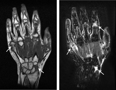 図1 コンパクトMRI画像によるリウマチ早期診断例