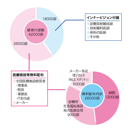 施設単位,医局単位,技師室単位での直接購読が多いため,回読率が非常に高く,実際の発行部数を上回る広告効果が期待できます。