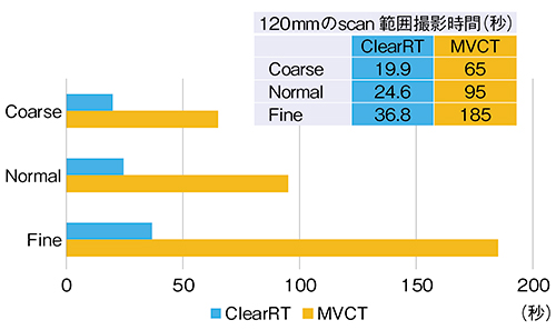 Coarse,Normal,Fineの3つの撮影モードがあるが,撮影時間はいずれのモードにおいてもMVCTよりClearRTの方が短い。