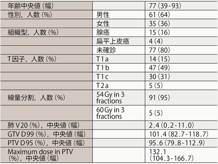 1.臨床的肺がんも含めた96例の成績(Ryuno, Y., et al., Radiat. Oncol., 17(1) : 128, 2022.)