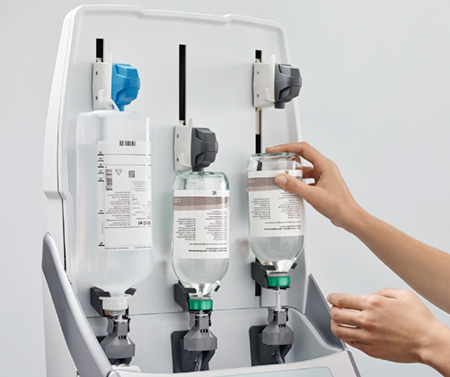 また,検査終了後は,ボトルホルダーに取り付けられた製剤からそれぞれ注入した量をデイセットに自動補充し,次の検査に備えます。