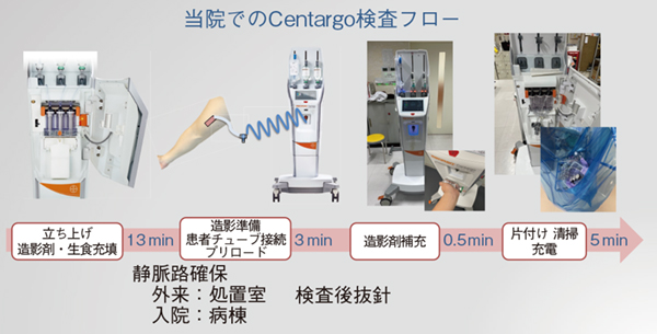 Centargo導入後は,大容量の生理食塩水バッグの使用により後押し用生理食塩水の準備が不要になるなど造影時の看護業務が格段に簡略化でき,看護師から技師へのタスクシフトが進んだことで,看護師からも好評を得ている。看護師の人員不足による接続待ち時間が短縮されるなどスループットも向上し,病院経営やコストパフォーマンスの向上に貢献している。