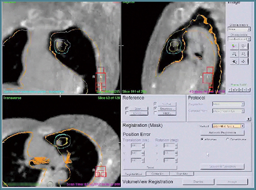 また,4Dレジストレーション時の位置ズレの補正は,Symmetryの“1-click 4D-registration”機能によりほぼ自動的に可能であり,実際に精度良く一致した画像が得られている(図5)。