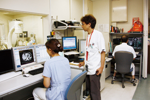 放射線科では,CTがBrilliance iCTと16列CTの2台,MRIがIngenia3.0T(フィリップス)と1.5Tの2台体制,バイプレーンの心カテ装置など血管撮影装置3台,透視と一般撮影装置が各2台をそろえている。機器導入など運用の方針について緒方技師長は,「地域の医療を支える地域医療支援病院としての役割を果たすべく,病院の規模以上に医療機器は充実しています。機種の選定にあたっても,臨床のニーズにあった機器を選択できるように,装置の性能や特徴を判断し,その価値を生かせるように責任を持って運営にあたっています」と述べる。