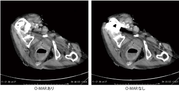 O-MAR(Metal Artifact Reduction for Orthopedic Implant)による画像比較