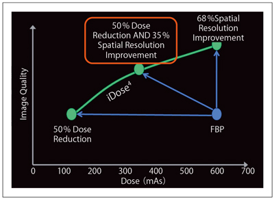 図1 iDose4の線量(横軸)と画質(縦軸)の関係