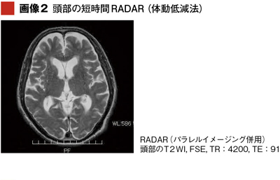 OVALには,モーションアーチファクトを低減する“RADAR”が搭載されているが,同院では通常の検査ではオフになっており,救急などで制動が難しい患者や,パーキンソン病で振戦がある場合,また認知症などの患者ごとに,RADARの適応を判断している。RADARを使用するのは10人に1人ぐらいと多くはないが,熊谷技師長によれば,「RADARはどの断面でも撮像が可能で,補正によってモーションアーチファクトが抑えられますし,体動が大きすぎて補正できない場合でも何とか診断できるレベルの画像が得られます」とのことだ。
