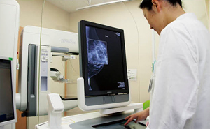 放射線科での検査は,視触診,マンモグラフィ,超音波検査に加え,必要に応じて生検,MRIを実施する。このうちマンモグラフィシステムは,センター開設当初から日立メディコ社のFPD搭載デジタルマンモグラフィ「Selenia」(HOLOGIC社製)を2台導入していたが,2012年9月に1台をトモシンセシス対応FPD搭載デジタルマンモグラフィ「Selenia Dimensions」(HOLOGIC社製)に更新した。現在,トモシンセシス撮影機能を二次検査・精密検査に用いて,成果を上げている。