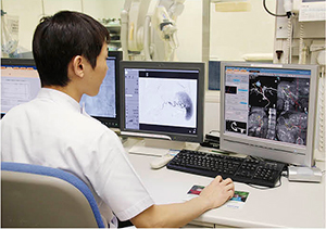 TACEの治療成績向上に重要な役割を果たす血管撮影装置に,宮山部長はAllura Xper FD20を選んだ。放射線科ではメーカー各社のモダリティが稼働しているが,フィリップス社製装置を選定した理由について宮山部長は,「当院では,MRIと血管撮影装置,超音波診断装置などにフィリップス社の製品を使用していますが,非常に高性能であることが主な購入の理由です。TACEでは,造影剤を注入し,それを透視像で観察しながら手技を進めるため,透視像の画質が大きなカギを握っています。Allura Xper FD20の透視像の画質は,大変優れていると思います。また,TACEは2DのDSA画像だけでは手技のための情報が不足していて,CBCTや3D画像も治療の精度を高めるために重要です。Allura Xper FD20は,それらのアプリケーションも含め,精密なTACEを行うための高い能力を有しています」と述べている。