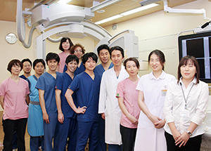 現在,心臓血管センターには,内科医が9名,外科医が4名在籍している。また,臨床工学科には,インターベンションを支援する臨床工学技士が19名いる。通常,インターベンションは,内科医1名,臨床工学技士2名,看護師1名の4人体制で行っており,コンソールにはスタッフを配置せず,血管撮影装置の操作は,すべてカテーテル室内で完結するようにしている。