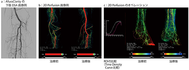 末梢血管のインターベンションは,日本国内全体でも症例数が増えているが,一方で治療後の再狭窄率の高さが指摘されている。これは血管径が細く,狭窄している病変が長いことから,バルーンで拡張しても再狭窄しやすいためである。そこで,京都桂病院の心臓血管センターでは,AlluraClarityファミリーにオプションで搭載できる最新のアプリケーションである2D Perfusionを用いて,バルーン拡張術前後の血流動態の評価を試みている。