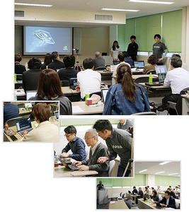 初日のワークアウト後半には,平原氏が講師を務めて,「Pythonの画像処理」と「Kerasの基礎」が行われた。まず,「Pythonの画像処理」の演習では,参加者がPythonでの深層学習を行うライブラリなどを集めたAnacondaからプログラミングおよび実行環境のJupyter Notebookを起動させて,イメージプロセッシングを実行する形式で進められた。続く「Kerasの基礎」では,Kerasと2日目の演習で利用するGoogleが無償で提供するクラウド環境,Google Colaboratoryについて説明した。平原氏は,Google ColaboratoryではNVIDIAのGPU環境が使えるので,演算が格段に速くなると強調した。