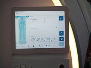 野田主任は画質以外にも,VitalEyeによりベルトセンサーの位置調整や呼吸同期不良による再撮像がなくなり,患者の負担軽減とワークフロー向上につながるといった利点を挙げる。VitalEyeで検出した呼吸波形はIngenia Elition 3.0Tのコンソールに表示されるほか,ガントリ前面の左右に設置された12インチのタッチスクリーン“VitalScreen”でも確認できる。VitalScreenでは,患者情報や患者体位の確認,心電図波形のセットアップなどが可能で,呼吸同期のセットアップも含めた検査準備をすべてベッドサイドで行うことができる。