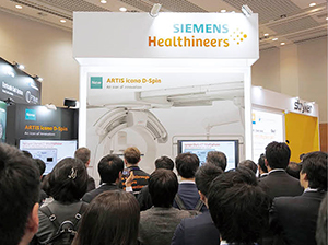 シーメンスヘルスケアは2019年11月19日(火),新型血管撮影装置「ARTIS icono D-Spin(以下,ARTIS icono)」を発表。同日から販売を開始した。その2日後の21日(木)には,福岡国際会議場・福岡サンパレス(福岡県福岡市)で開催された第35回NPO法人日本脳神経血管内治療学会学術総会で新製品お披露目会を行い,学会参加者に向けて盛大にPRした。脳卒中などの脳血管内治療において,血管撮影装置にはスピード(時間短縮)とクオリティ(画質)が求められる。この2つのファクターを高い次元で実現したARTIS iconoは,脳血管内治療にどのような革新をもたらすのか。新製品お披露目会を取材したほか,Siemens Healthcare GmbHのインターベンション部門マーケティング責任者であるPhilip Stenner氏(Director Global Marketing Interventional Radiology)にインタビューし,その最先端の技術を確かめた。