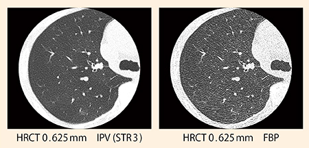 胸部CTはスライス厚0.625mmで撮影し,肺野は1mm,縦隔は5mmで読影している。杉山部長は画質について,「FBPに近い違和感のない画像で十分に満足しています。辺縁部も高精細に描出されていますし,画像ノイズとアーチファクトも抑えられているので,ストレスなく読影できます」と評価する。