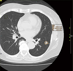 同院では,肺結節検出機能を使わずに読影後,SAI viewerがピックアップしたものを再びチェックするフローで運用している。鈴木先任准教授は,「肺結節の読影では,肺の血管径と同程度の大きさの時に見逃しやすいことがありますが,SAI viewerの検出機能を使うことで結節の候補がピックアップされます。それを再確認して答え合わせをする感じですが,数か月の使用経験で検出機能がなかったら見逃していたというケースも実際に経験しています」と話す。運用について菊地医師は,「SAI viewerの検出機能は,まず自分で読影したかどうかのアラートが出て承認しないと使えません。画面では,SAI viewerがピックアップした候補と自分でチェックした結節が,スライス位置でタグとして対比して表示されて,自分がチェックしなかった結節が一目で確認できるので使いやすいですね」と説明する。