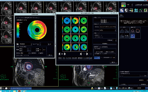 当院における心臓撮像は月間10例ほどであるが,その8割はATP負荷を含めたone stop shopである。解析は,VirtualPlaceを用いてBull's eyeの心機能解析や冠動脈解析,フロー解析などを行っている。画像はすべてMRI担当技師が作成しており,時に描出能に関して他社製WSとの比較も行っている(図5)。