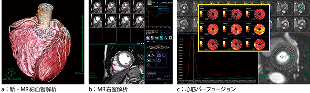そのほか,AZE VirtualPlace雷神3.5は冠動脈(whole heart coronary angiography)の解析用として“新・MR細血管解析”,先天性心疾患などの右室形態機能評価に用いられる“MR右室解析”,心筋パーフュージョン撮像時の“心筋パーフュージョン”など,心臓MRI用ソフトウェアが充実している(図5)。
